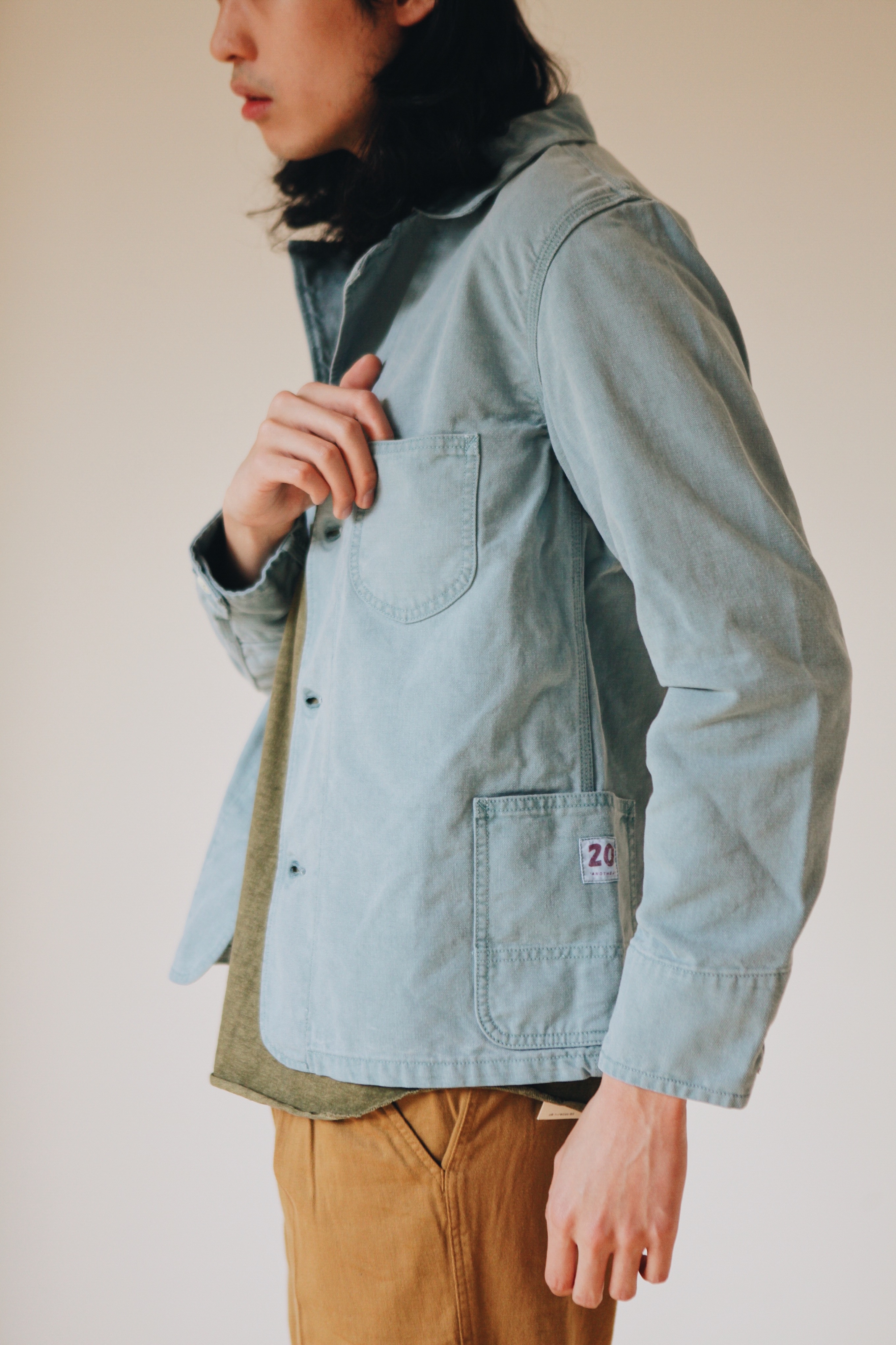 Another 20th Century的工裝夾克以硬挺不失細緻的帆布材質製作,有別於其他品牌的工裝夾克,不以美式粗獷風格為主軸,而以俐落窄身版型為特色,鈕扣、領口標籤等細節皆經染製後呈現不同色澤,使新品呈現充滿質感的洗舊感,喜歡老品味道的你,一定也會喜歡這款精心的工裝外套氛圍。