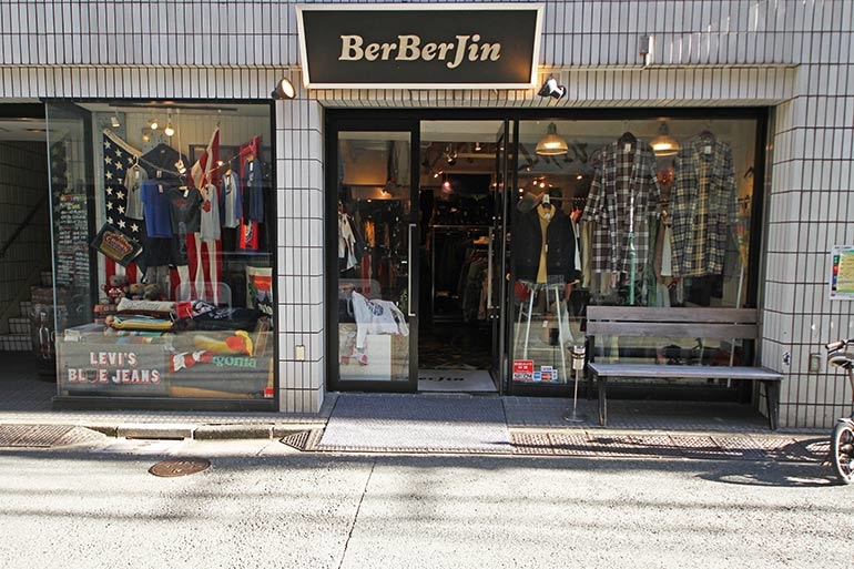 擁有20多年歷史的老店BerBerJin,店主山田和俊與藤原裕在古著文化圈裡並列為兩大閃亮明星,店裡販售著Vintage最經典的歷史,尤其是美式文化精髓:搖滾Tee、單寧褲、皮夾克、80至90年代adidas、nike、kappa等。最有記憶點的莫過於地下室陳列著1890年至1966年間品項最完美的的Levi's 501牛仔褲,數量之多、完整度、價格都讓人驚嘆不已。