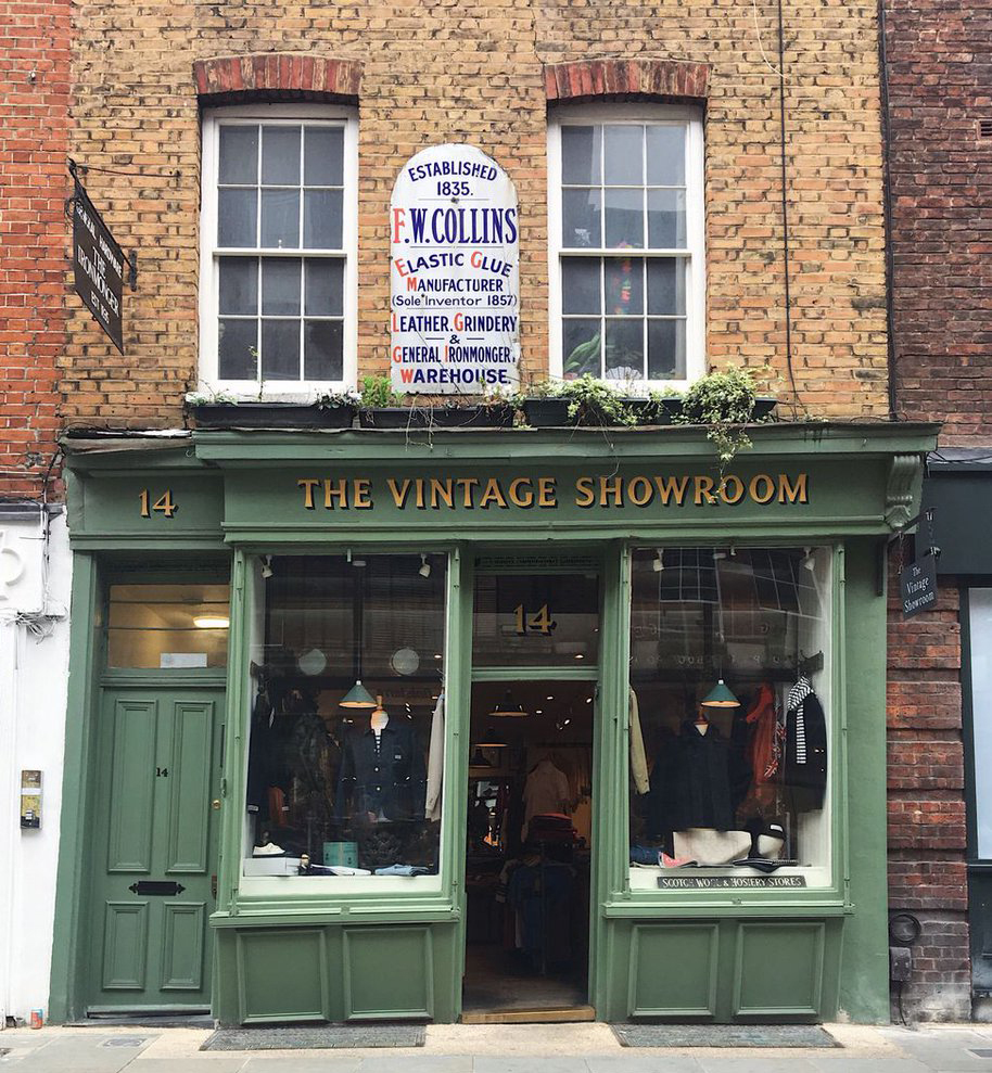 由Douglas Gunn 和 Roy Luckett 在 2007 年創辦的「The Vintage Showroom」,是一間蒐藏了世界上最好的古著的男裝店舖,舉凡20世紀中葉前的工裝、軍裝、外出裝以及傳統英式剪裁的紳士服、鄉村服裝,都盡收店裡。Roy Luckett在古著界有30年的經驗,最初在倫敦著名的Portobello Market擺攤,這個全世界最大的古著市場為他帶來重要的人脈和古著珍品。