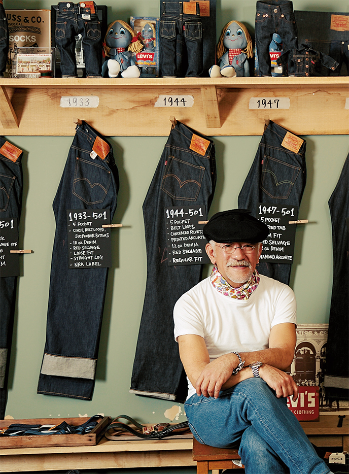 說來有趣,年過半百的大叔大坪洋介,現任Levi's LVC(Levi's Vintage Clothing)及LMC(Levi's Made & Crafted)亞太區的銷售總監,為Levi's工作的他,年輕的時候卻是不折不扣的古著獵人,早期在古著金礦開拓的先鋒之ㄧ。生活在洛杉磯的他,每週開車到郊區的舊貨店,挑選沒人要的50年代滯銷貨:Levi's牛仔褲、褪色的牛仔外套、舊襪子。從美國寄往東京阿美橫町區的小店Crisp。隨著日本古著店在80年代對美式服裝的需求大增,大坪洋介不得不從加州等地招募一批「挑貨員」協助他的古著事業。他同時一直為單寧而著迷,他自述當他還是個男孩的時候,他的夢裡都是深淺不同的藍色牛仔。從1967年買了人生第一條Levi's 501牛仔褲,養成他獨特的養褲儀式:穿著牛仔褲泡在浴缸裡讓原始的牛仔布料縮水達到完美的適合自己體型的樣子。