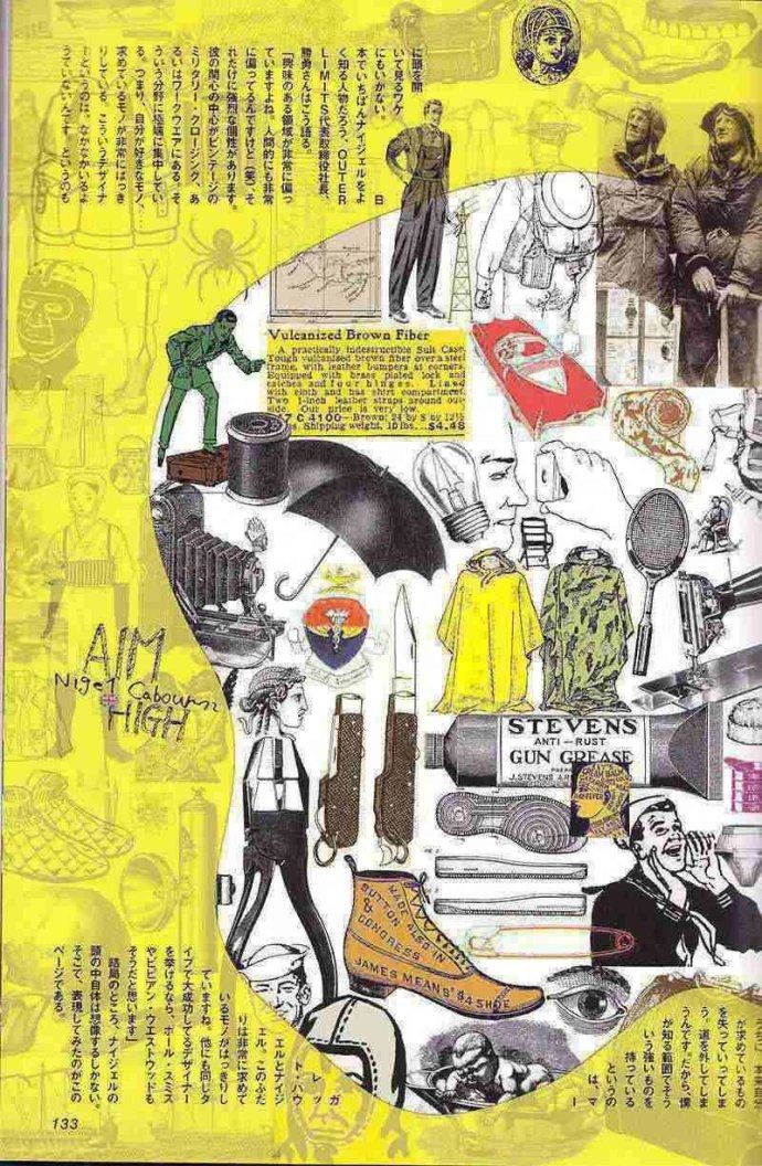 英國服裝設計師Nigel Cabourn從70年代開始收集古著,Paul Smith送給他第一件古著,是一款綠色的羊皮翻毛領飛行員夾克(RAF 夾克),有系扣與膠帶。而Nigel的父親曾在二戰期間於緬甸和印度服役,叔叔曾是英國皇家空軍的一員,保留下來各種珍貴的手記和照片等紀錄,這些激發了他從古著軍裝、戶外單品、工裝尋找靈感,自此40多年,Nigel一直致力於古著所啟發的服飾設計。