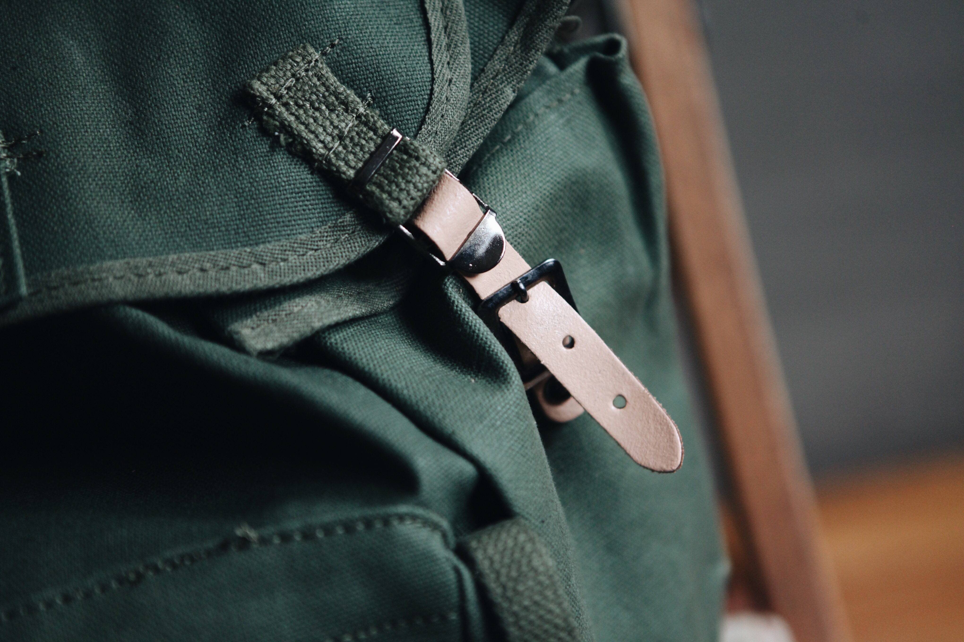 零件使用皮革,使綠色包包有溫潤的顏色點綴