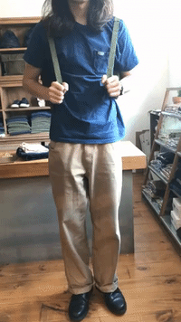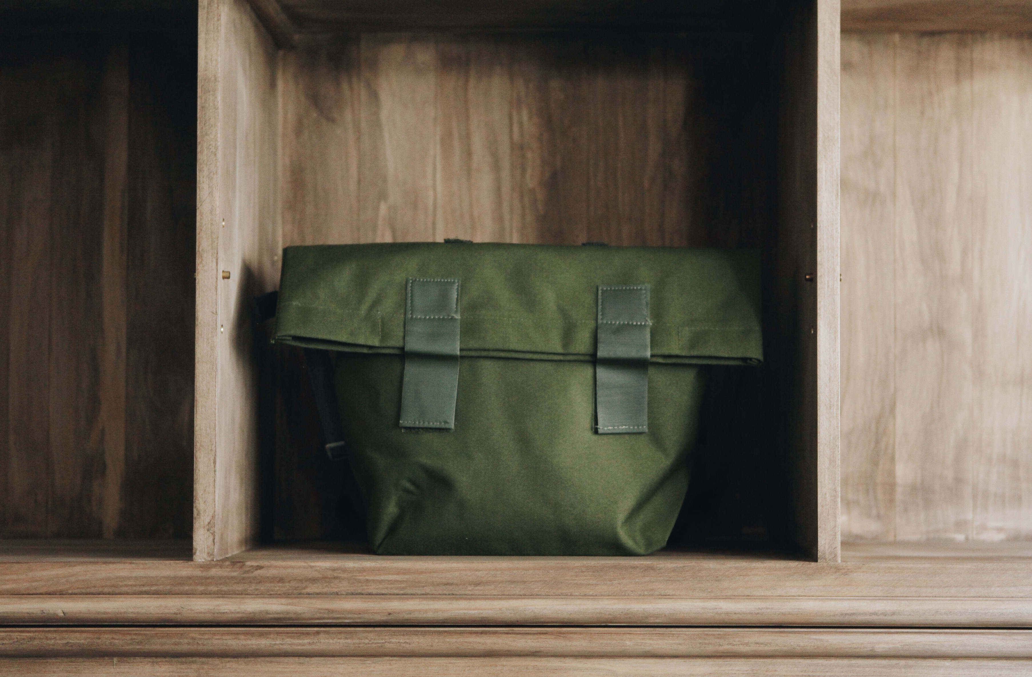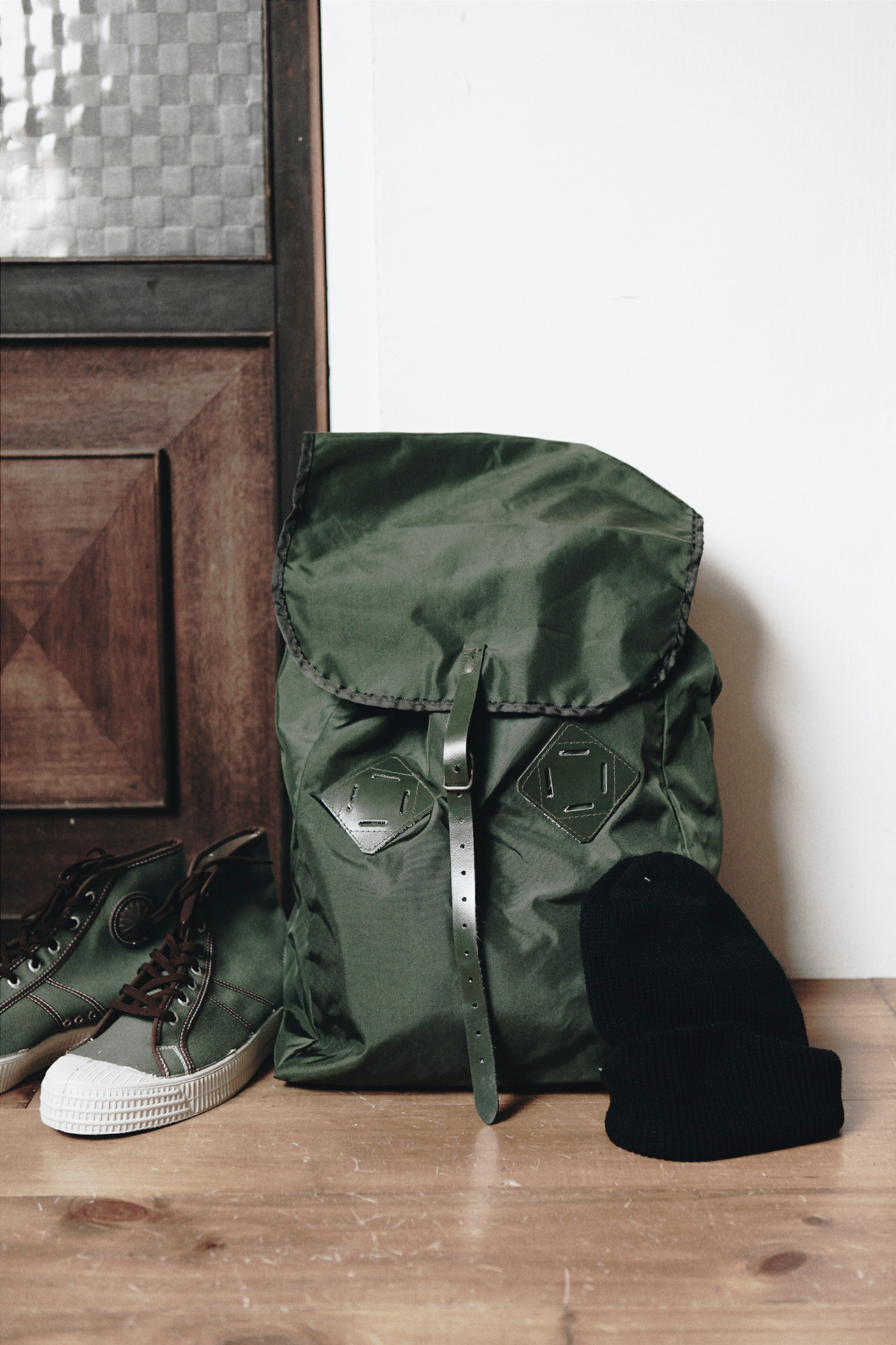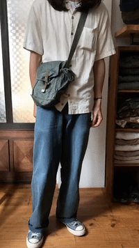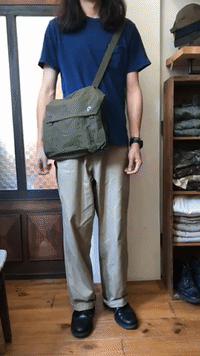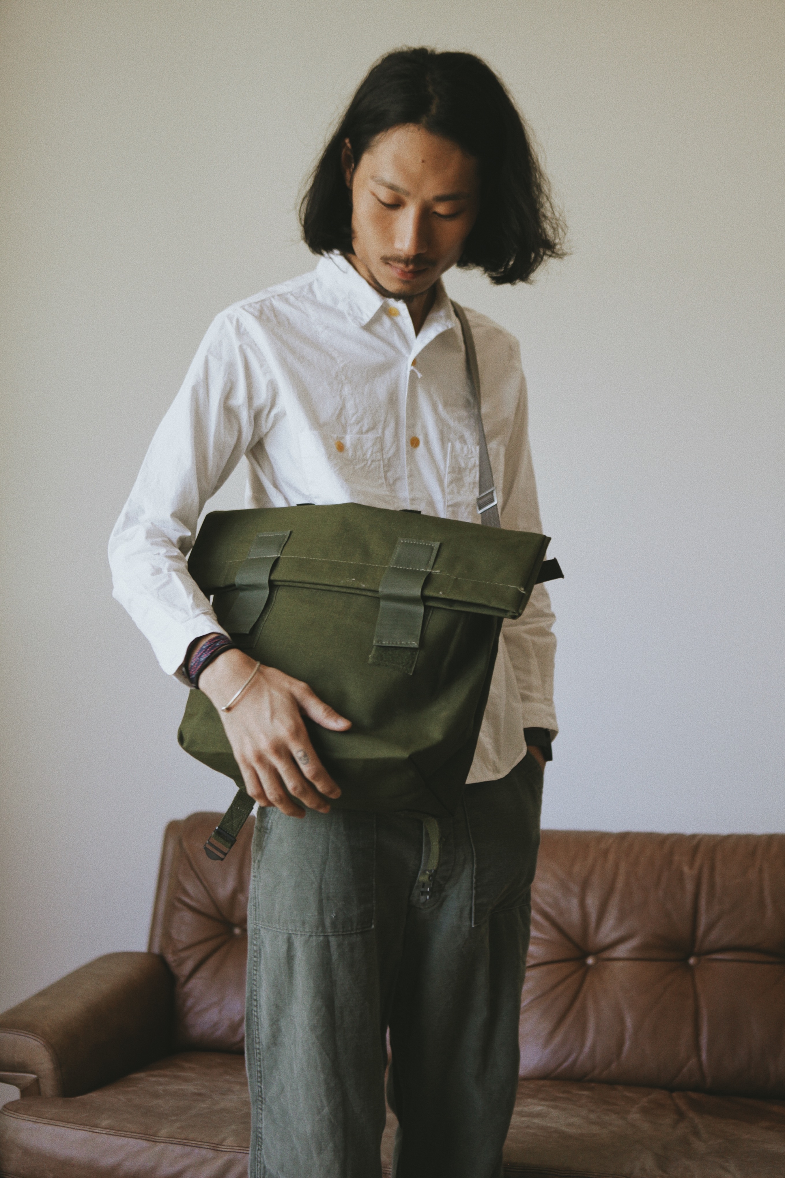除了服裝之外,喜愛老品的客人一定不會忽略店內一顆顆外型獨特、實用且每個都有故事來歷的軍包們。這些年紀可能比各位還大的老包們,產出都有原始的用途,例如小型的圓筒、方形包包們,許多是兩次世界大戰時期的防毒面具包,當時使用化學武器為一種常態的交戰手段,因此出現許多裝放面具的包款,這些包包通常還有數個較小的隔層放置使用手冊、神經毒素解毒劑等物品,光是這樣的描述就可以感受到當時的歷史氛圍與老包的魅力;或是這顆Rolling on復刻的美國紅十字會小包,外型實屬罕見,在二戰時期這種小袋子兼有圍裙、收納、隨身背包三種用途,此時腦中已經可以幻想一個醫務兵快速的將背帶束帶解開綁成圍裙為傷患醫治的畫面。