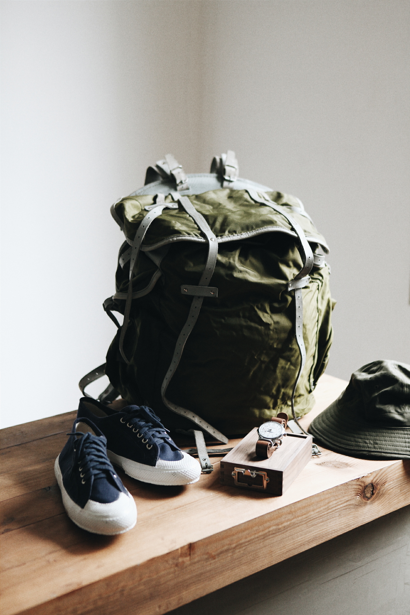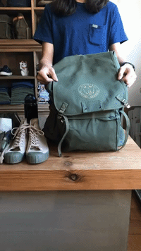 回到現在,這些懸掛、安置在店內的退伍軍包們已經褪去當時的備戰狀態,準備好融入你的日常生活使用,例如早期的美軍無線電包,厚磅的材質與適宜的隔間剛好放置你的單眼相機、鏡頭、電池等;你的四天三夜外宿用品能完全打包在英軍野戰包內;喜歡登山、露營等充實體能的戶外運動,美國露營包與義大利山地部隊軍用背包定能滿足你的期待。