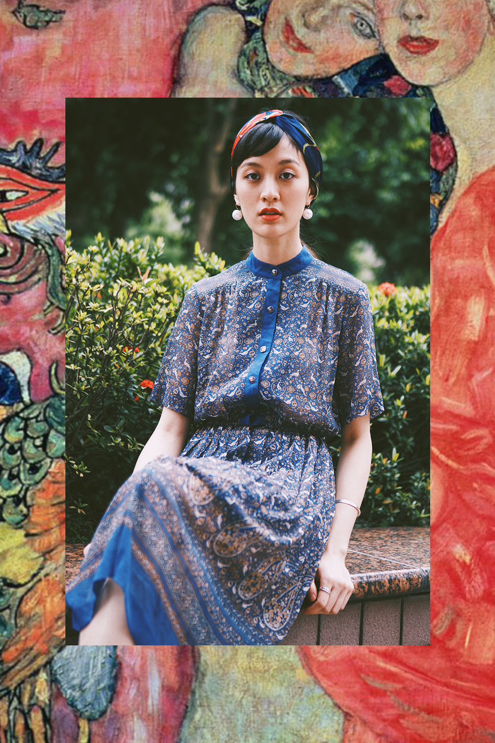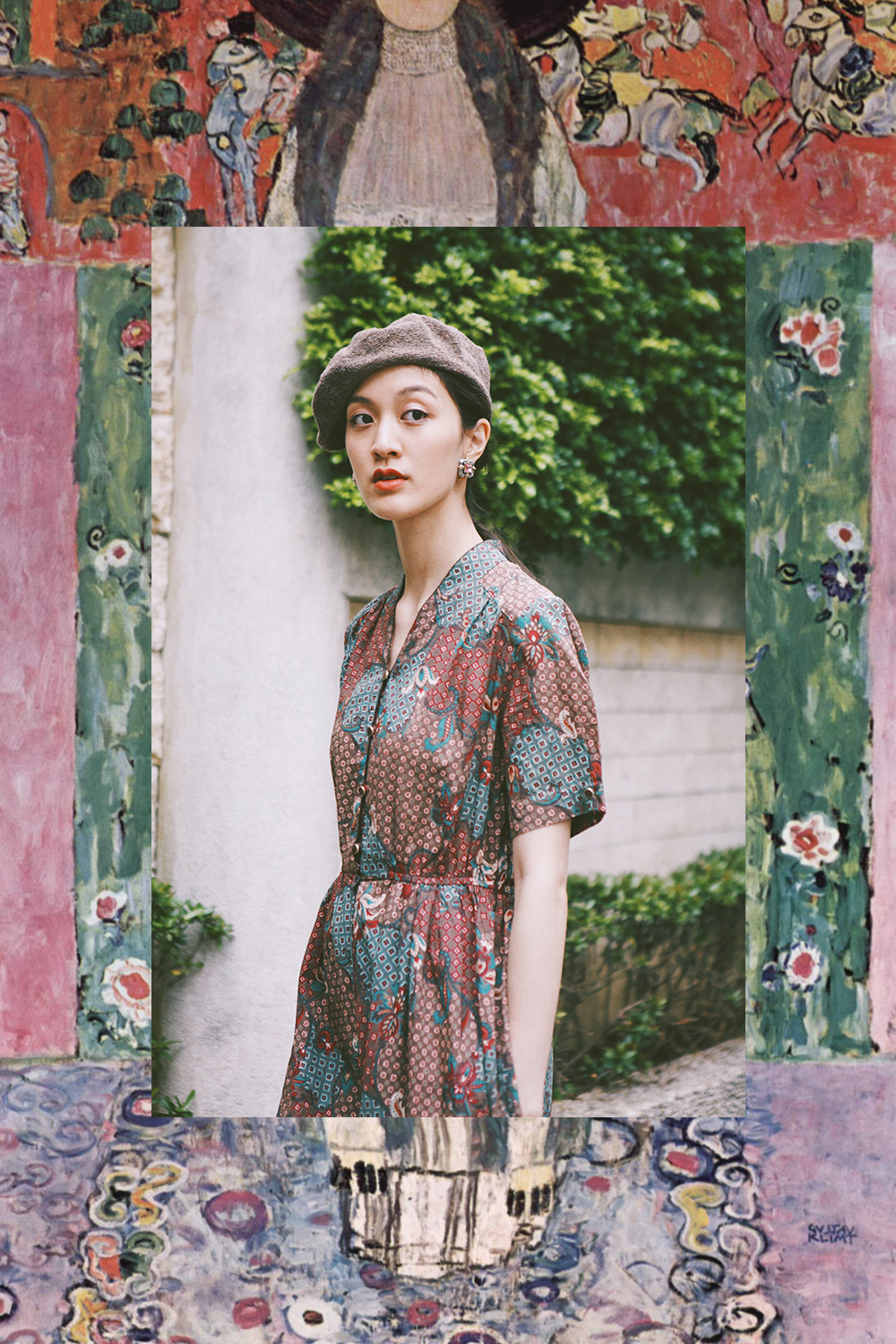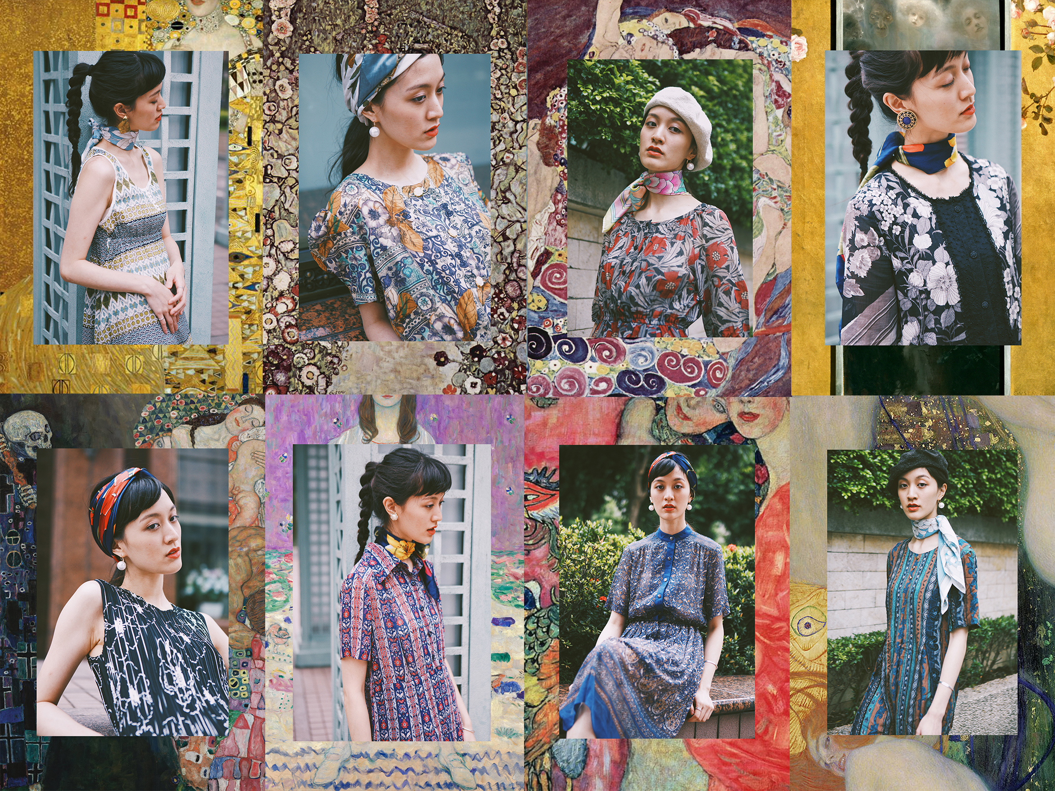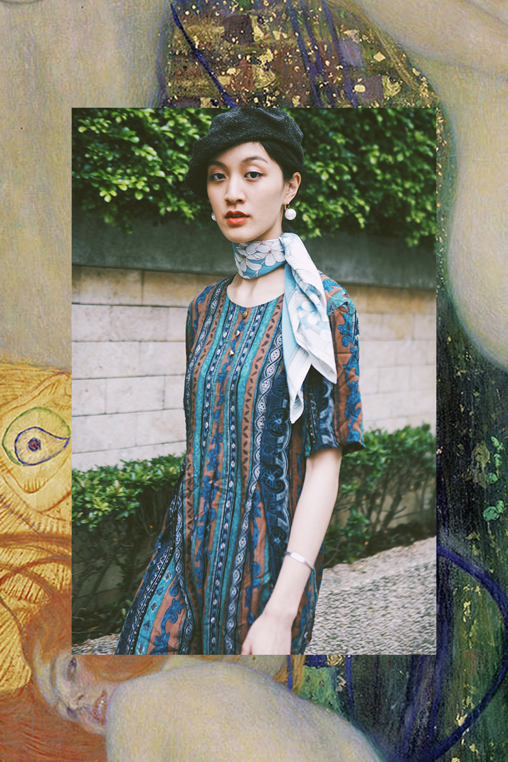 不少Vintage洋裝花紋富有活力、流動的線條、自然的花卉、植物元素,令人聯想起歐洲新藝術時期的繪畫特徵,如古斯塔夫·克林姆(Gustav Klimt),他的作品充滿對女性姿態的描繪、金碧輝煌的裝飾、具有象徵意義的幾何符號、東方意象、有機的植物。他在藝術上取得極大的成功,即使到了現在也廣受喜愛。以下精選了宛如藝術品般絕美的Vintage洋裝,如果你也是克林姆愛好者請一起流轉其中。
