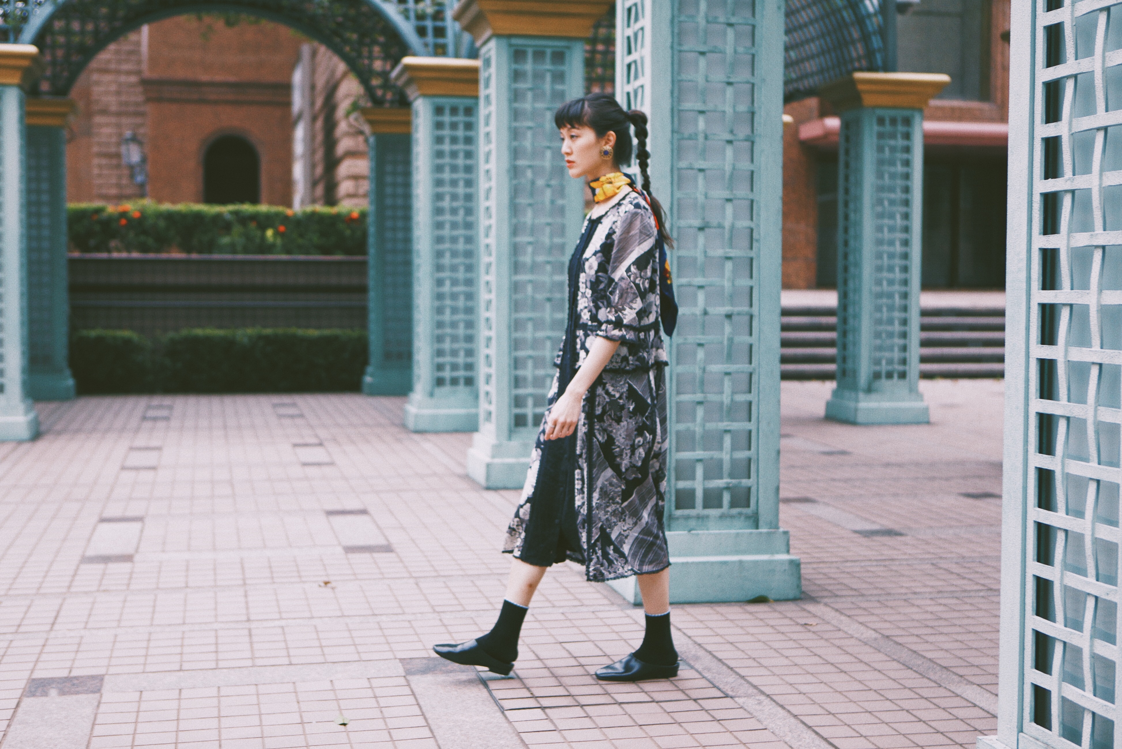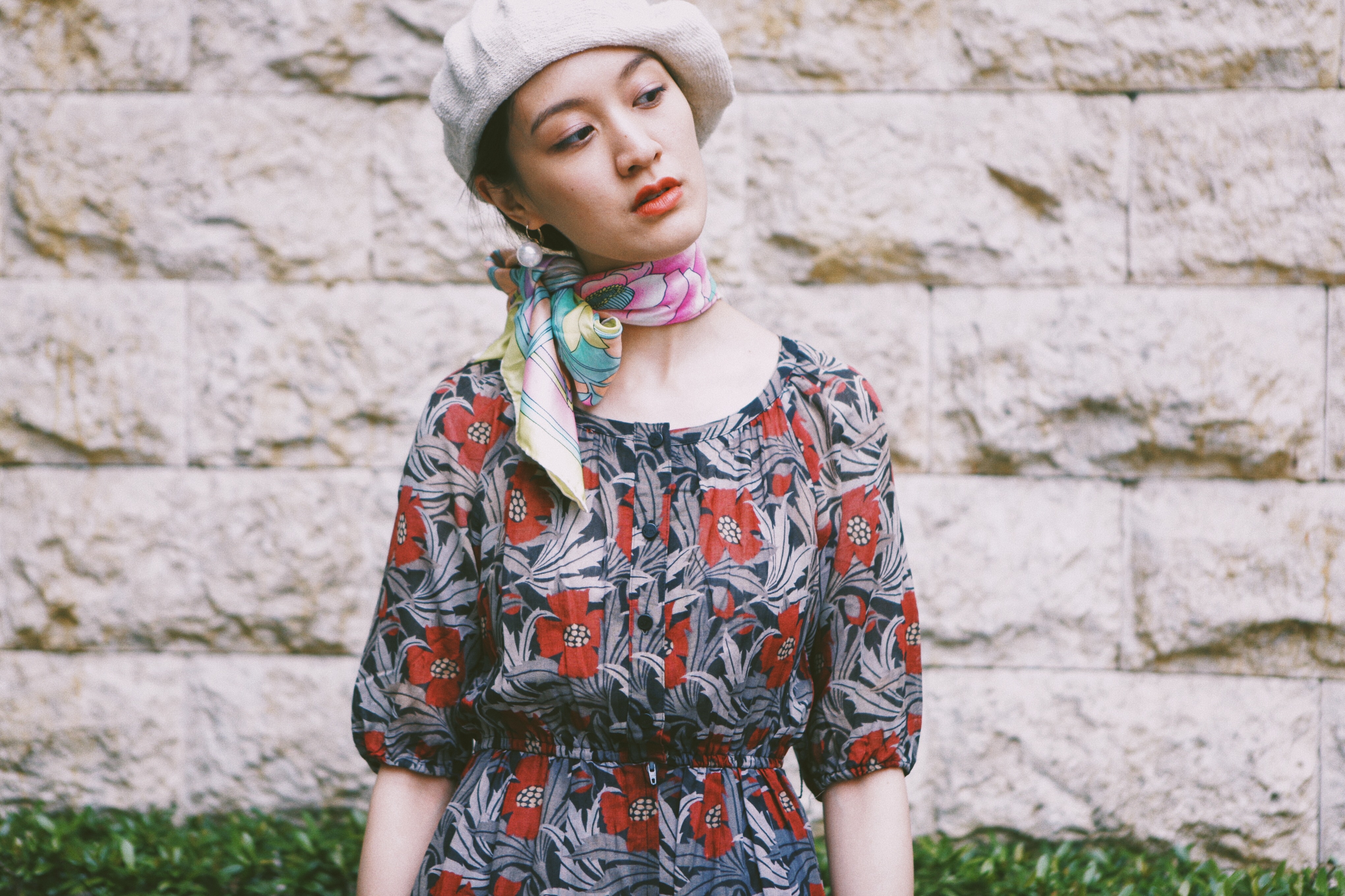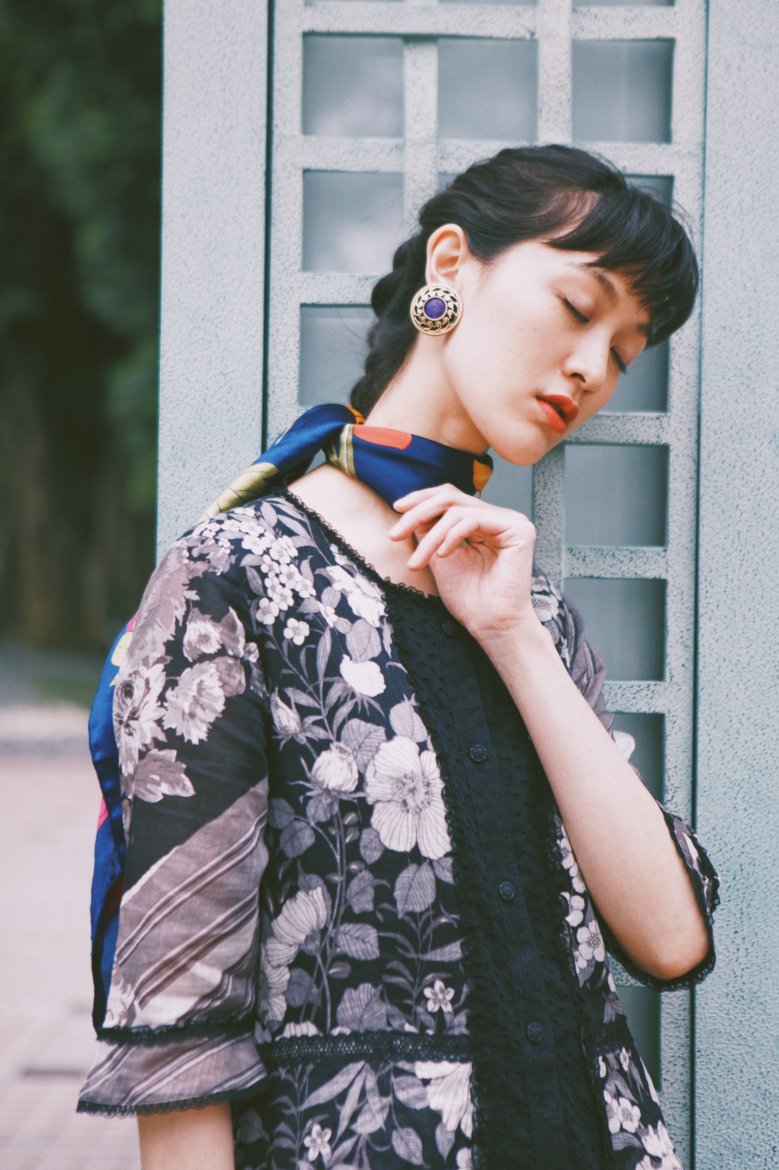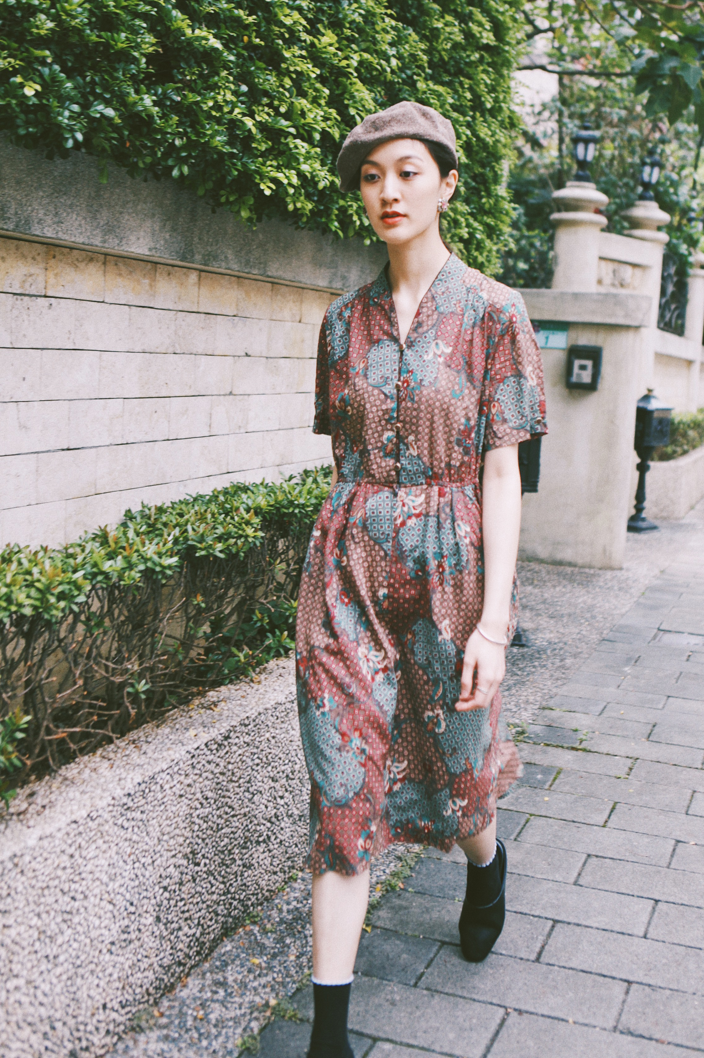 洋裝中張狂的花朵與流動的草葉就如同生命的歷程。