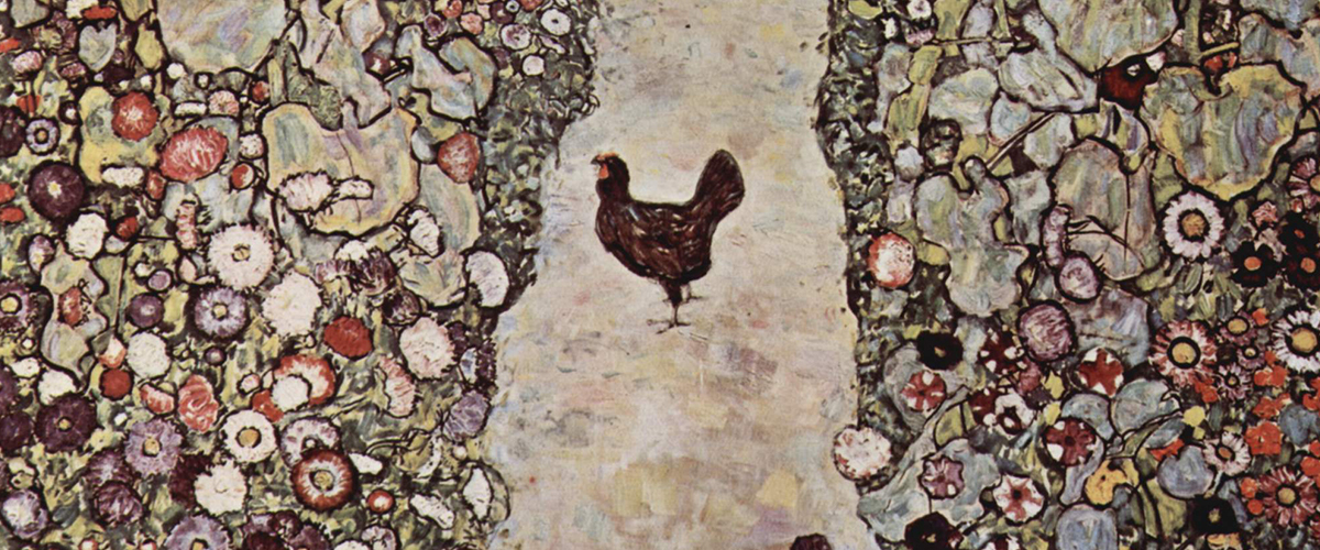 在奧地利城鎮魏森巴赫(Weissenbach)體驗到百花齊放、綠意包圍的夏日美景,小徑上路過兩隻母雞,這是克林姆畫作中少有的溫情。